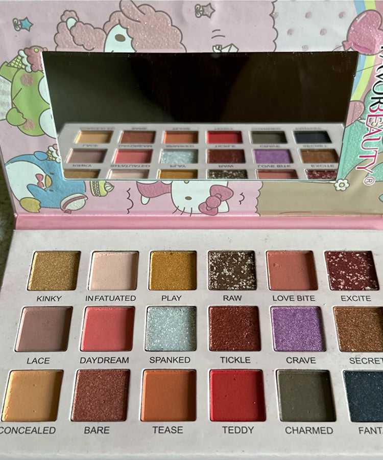 Get ready to add a touch of cuteness to your glam with the Hello Kitty and Friends Eyeshadow Palette! Featuring an adorable mix of colors inspired by Hello Kitty, My Melody, Kuromi, and more, this palette brings soft pastels, playful brights, and sparkly shimmers all in one lovable design.